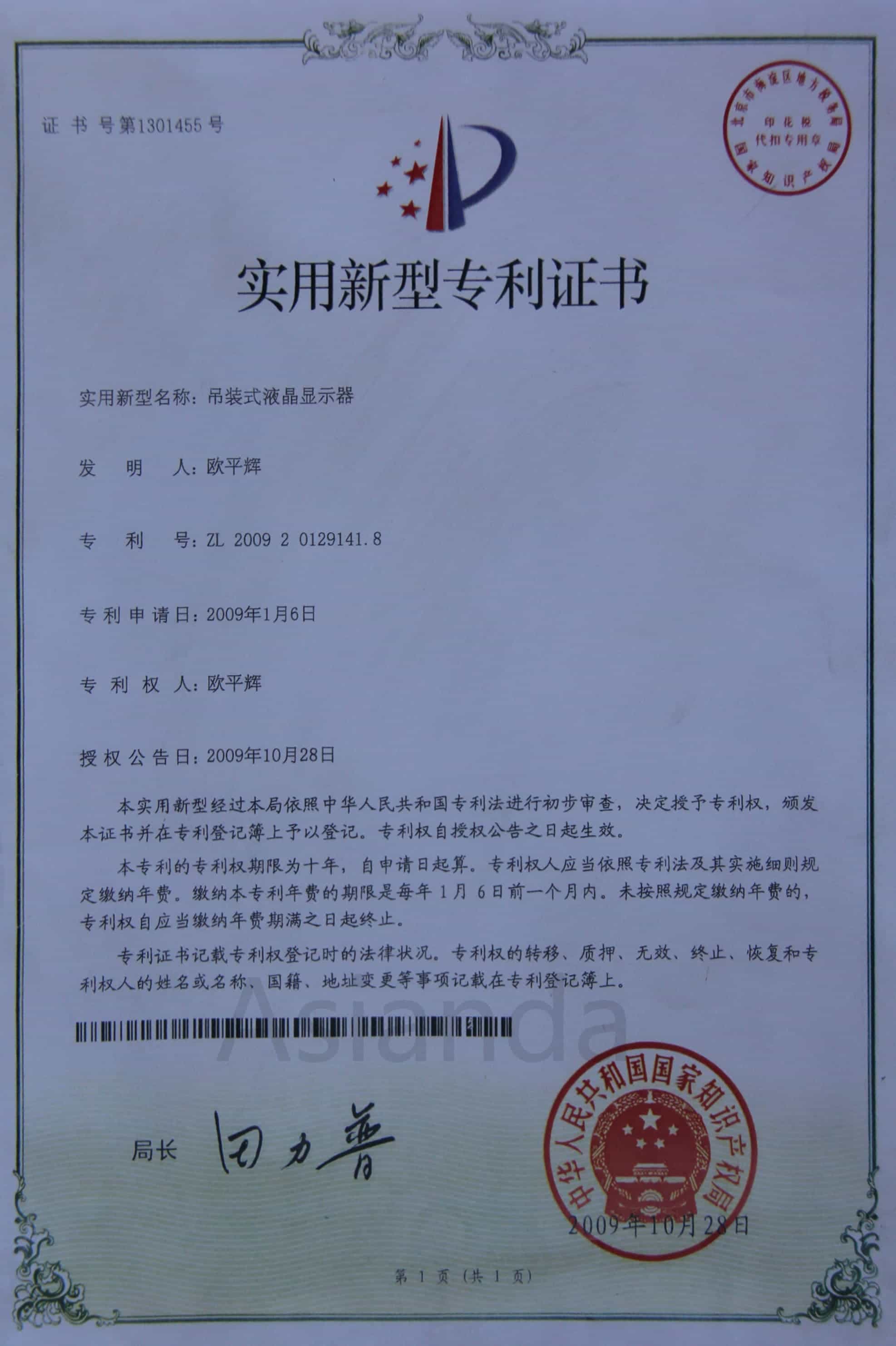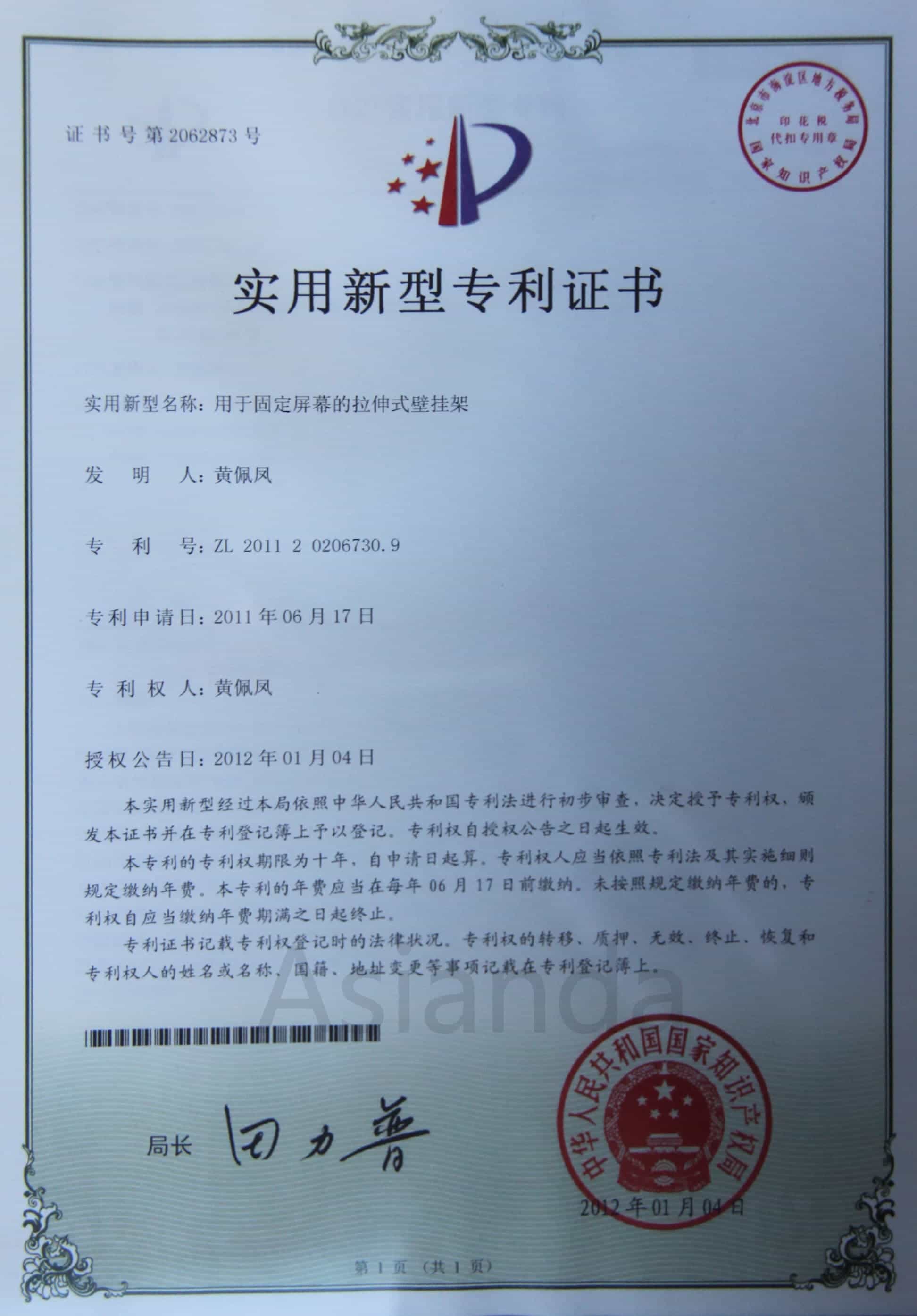 專利申請(qǐng)授權(quán)書(shū)