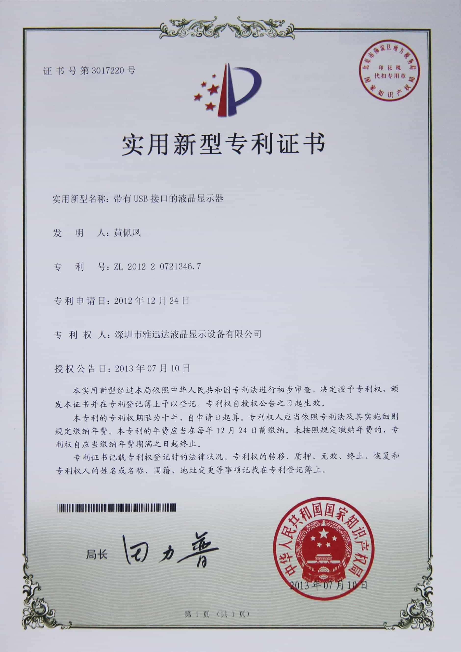 Usb接口液晶監(jiān)視器專利