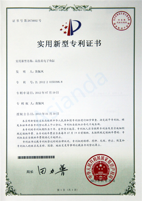 高仿真電子魚(yú)缸實(shí)用專利