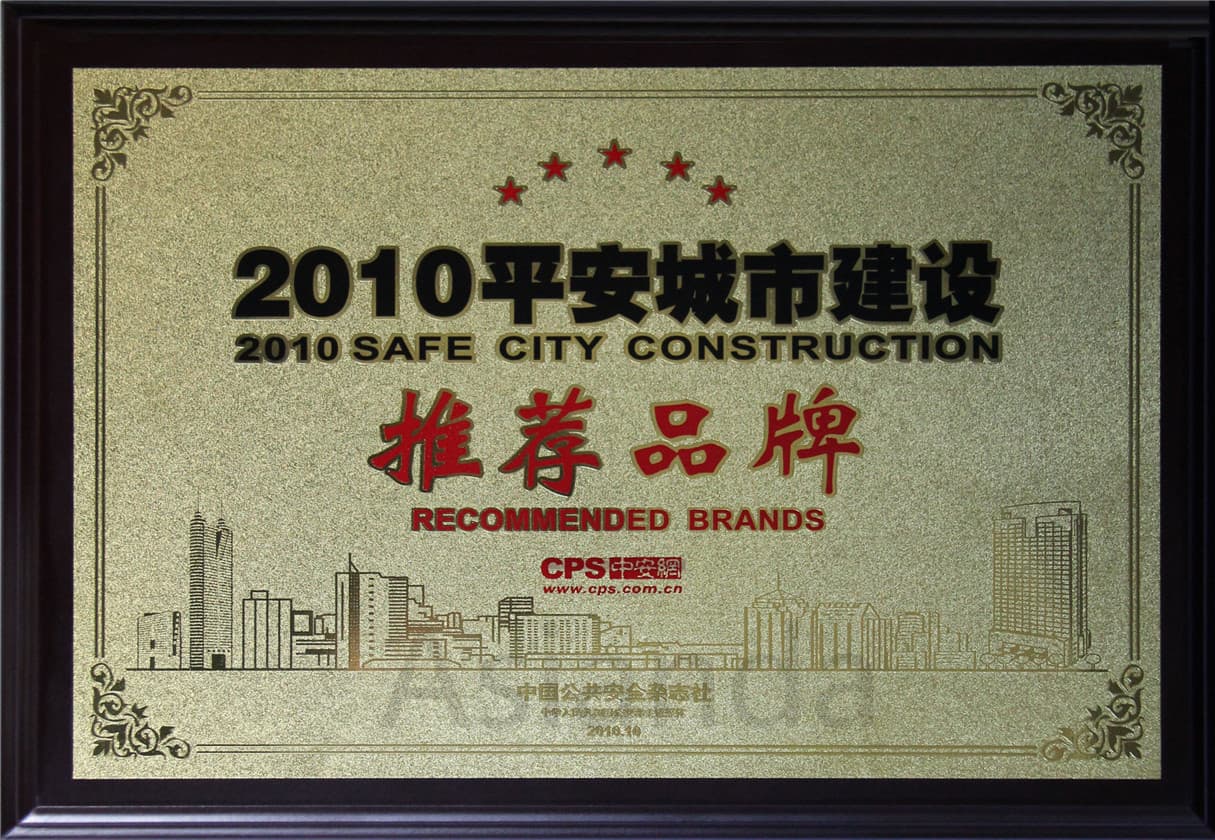平安城市推薦品牌證書