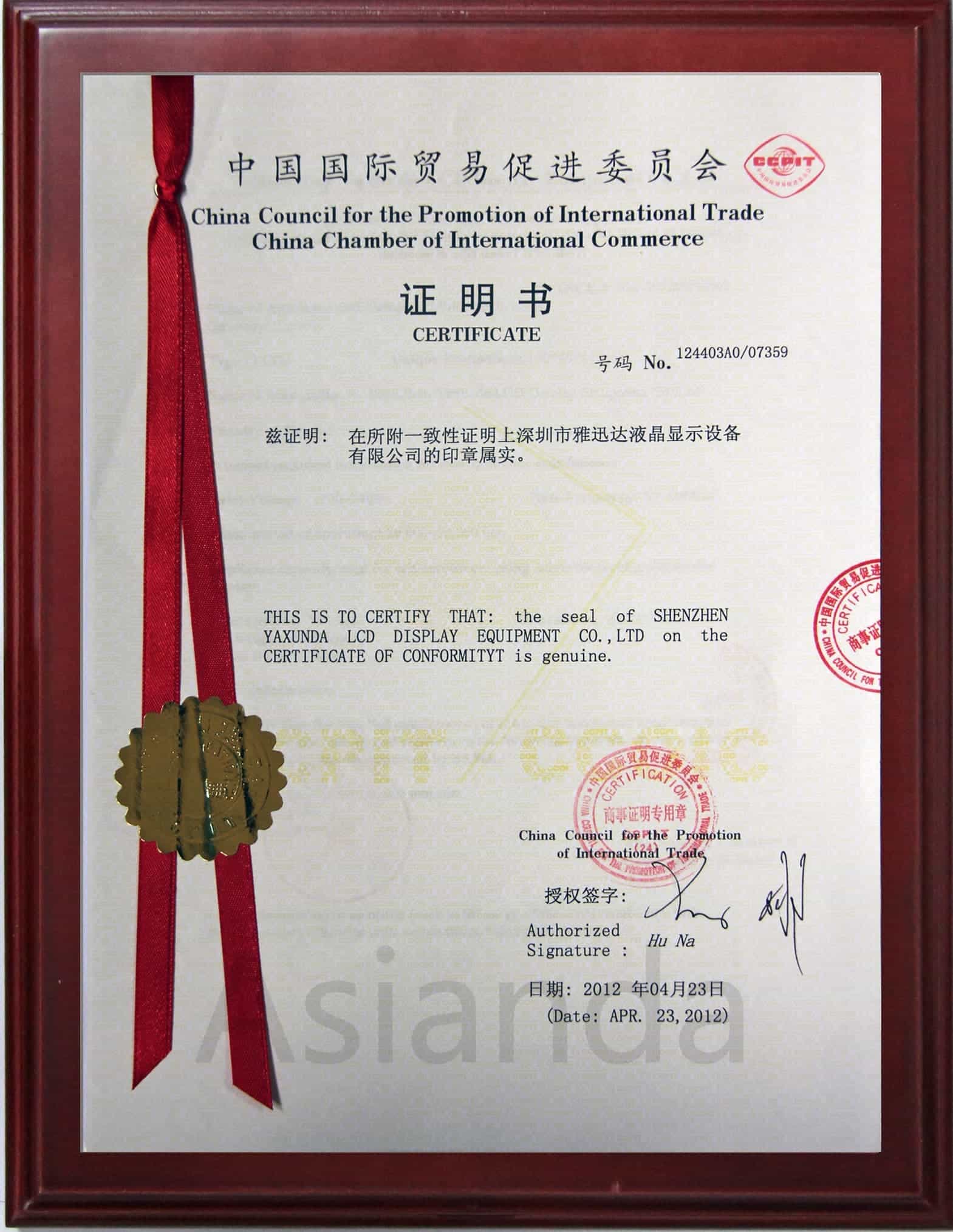 中國(guó)國(guó)際貿(mào)易促進(jìn)委員會(huì)證明書