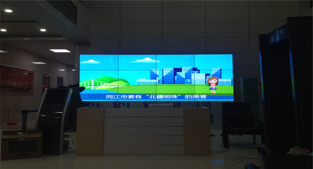 該液晶拼接墻體安裝在一面白色的大理石墻體前,在寬敞明亮的大廳里,顯得十分顯眼并且大氣。同江市法院的這面拼接墻主要用來展現(xiàn)法務信息、宣傳政策法規(guī)、播放法制視頻等等,極大的提升了法院信息的傳播效果,為便民服務、普法揚法錦上添花。