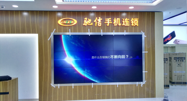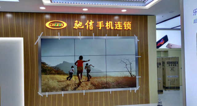 馳信手機連鎖店3x3三星46寸3.5超窄邊液晶拼接位于南京市,它建成后更好的詳細介紹了手機行業(yè)的各種品牌的推廣,達到了更好的手機推廣效果。