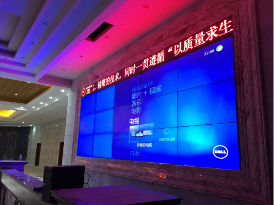 2016年4月23日,在廣州某智能科技有限公司所在單位分部安順市丁旗鎮(zhèn)工業(yè)園安裝的3×5液晶拼接屏采用了雅迅達55寸超窄邊液晶拼接單元,運用了3×5共15塊,搭配了多屏處理器高清顯示設備??梢詫崿F(xiàn)多畫面同時顯示,并且可以實現(xiàn)自由開窗,監(jiān)視窗的窗口大小可以自由調控、位置可以隨時挪動,可以隨時切換信號源。是一種非常靈活的顯示方案,對于多監(jiān)控、多功能的公司顯示系統(tǒng),這個使用非常合理。