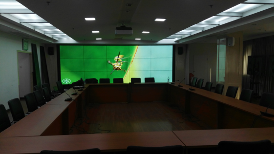 河北某地稅局會議室采用了雅迅達3×5拼接的55寸液晶拼接屏,同時使用了雅迅達定制的數(shù)字矩陣,并搭配了多屏處理器高清顯示設備。矩陣使用網(wǎng)絡控制,大屏也是網(wǎng)絡控制,可以實現(xiàn)多畫面同時顯示,并且可以實現(xiàn)自由開窗,監(jiān)視窗的窗口大小可以自由調(diào)控、位置可以隨時挪動,可以隨時切換信號源。是一種非常靈活的顯示方案,對于多監(jiān)控、多功能的液晶拼接屏顯示系統(tǒng),這個使用非常合理。