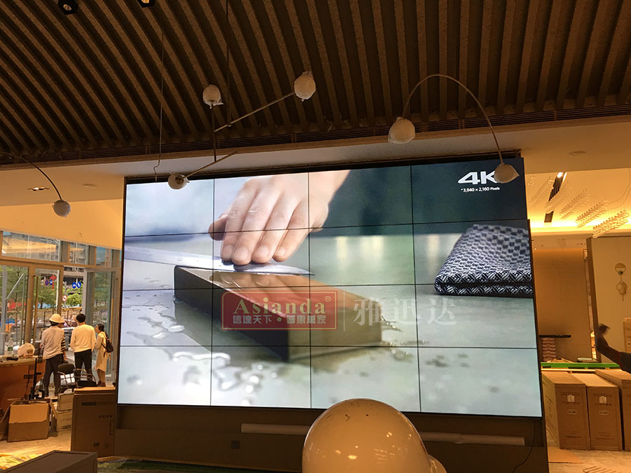 深圳聚星國際影城VIP室3x3拼接 深圳聚星國際影城46寸液晶拼接墻3x3商用顯示系統(tǒng)案例的是采用雅迅達46寸液晶拼接...