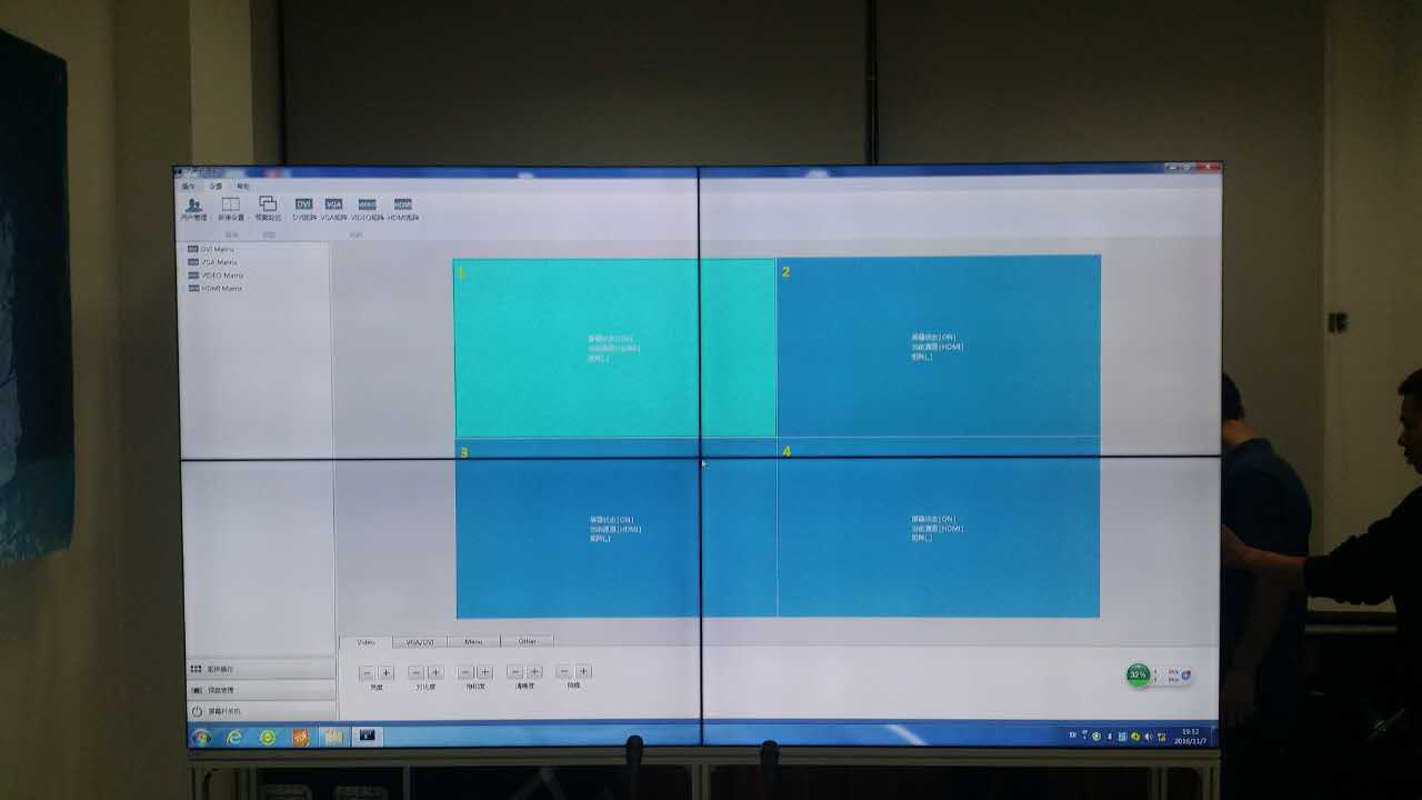 深圳某辦事處_2×2液晶拼接大屏_55寸液晶拼接屏 深圳某辦事處采用了雅迅達(dá)2×2拼接的55寸液晶拼接屏,同時(shí)使用了雅迅達(dá)定制的數(shù)...