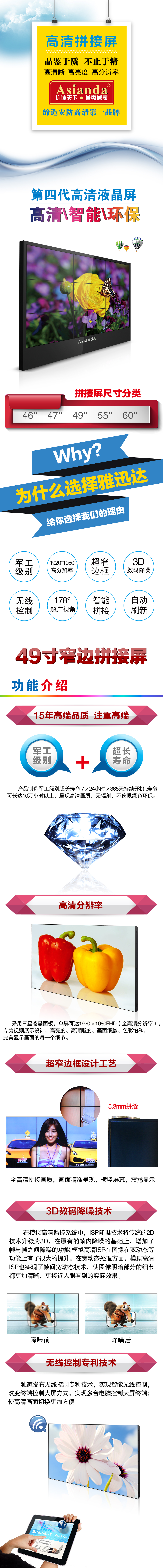 自從DID,PID等液晶屏面世后,安防專家組觀察發(fā)現(xiàn),在2009-2012年間,液晶拼接屏,液晶拼接墻,液晶拼接單元用量猛增,冒出很多家從事液晶拼接屏,液晶拼接墻,液晶拼接單元生產(chǎn)和施工的公司。DID/PID是一種以工業(yè)標(biāo)淮設(shè)計的,可長時間連續(xù)穩(wěn)定工作的液晶屏(一年365天24小時開機(jī)),能適應(yīng)惡劣工作環(huán)境的專用液晶屏。作為其獨(dú)有的顯示技術(shù),與普通液晶顯示器的不同在于其改善了液晶分子排列結(jié)構(gòu),可以橫向、縱向、吊頂放置。具有高亮度、高清晰度(1080P)、使用壽命較長、運(yùn)行穩(wěn)定和維護(hù)成本低等優(yōu)點(diǎn),并且其色彩飽和度較高(DID可達(dá)93%,而普通液晶屏僅為72%,達(dá)到了更高的對比度和亮度,以及8萬小時的超長使用壽命。銳安電子40寸、47寸、46寸高清監(jiān)視器均采用的是DID/PID技術(shù)的液晶屏,再加上一些特有的軟、硬件處理技術(shù),使得高清液晶監(jiān)視器能更加完美地滿足安防工程的需求,能完美地應(yīng)用與環(huán)境惡劣的工程場合。