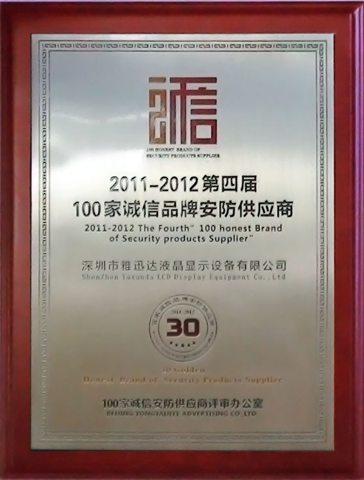 深圳雅迅達(dá)榮獲“30家金牌誠(chéng)信安防供應(yīng)商”稱號(hào)