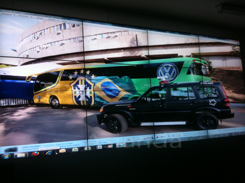 此套液晶拼接系統(tǒng)包括60塊超窄邊46英寸液晶屏幕,窄邊拼縫為6.7mm。分別組合成3*4,3*6,3*10拼接幕墻。每套顯示設(shè)備均采用超窄邊液晶技術(shù),打造出高亮度、高分辨率、高清晰度、高智能化控制的大屏幕顯示系統(tǒng)。該系統(tǒng)是集集中監(jiān)控、指揮調(diào)度、信息交互、應(yīng)急處理等綜合性的安全防范平臺??蓾M足了2014年巴西世界杯舉行的日常安全要求。