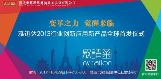雅迅達2013行業(yè)創(chuàng)新應(yīng)用新產(chǎn)品全球首發(fā)儀式邀請函