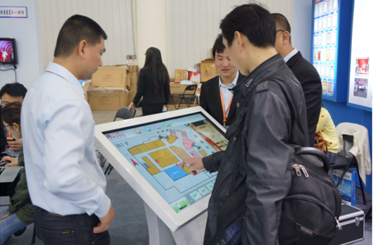 現(xiàn)場另一大明星產(chǎn)品也得到足夠關(guān)注:55寸雙面廣告機。不同于其他廣告機顯示畫面不足或者雙面展示但厚重粗陋的外形,本款雙面廣告機在實現(xiàn)雙畫面、差異化信息發(fā)布的同時,保持纖薄機身,外形靚麗時尚。紅外觸摸屏實現(xiàn)雙向互動,將發(fā)布和互動完美結(jié)合,更是吸引受眾的一大利器。