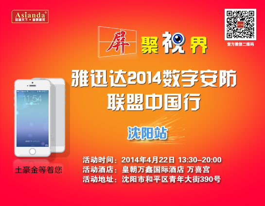 4月22日,在沈陽首家白金五星級酒店皇朝萬鑫酒店萬喜宮,雅迅達2014數(shù)字安防聯(lián)盟中國行沈陽站活動如期舉行。