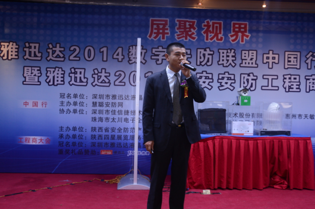 這場由深圳市雅迅達(dá)液晶顯示設(shè)備有限公司獨(dú)家冠名,慧聰安防網(wǎng)主辦,深圳市佳信捷技術(shù)股份有限公司、廣東鉑亞信息技術(shù)股份有限公司、珠海市太川電子企業(yè)有限公司、深圳市國祥安科技發(fā)展有限公司、惠州市天敏科技發(fā)展有限公司聯(lián)合協(xié)辦的“屏聚視界——雅迅達(dá)2014數(shù)字安防聯(lián)盟中國行”,以及由深圳市雅迅達(dá)液晶顯示設(shè)備有限公司獨(dú)家冠名,北京四星展覽服務(wù)有限公司協(xié)辦的“2014西安安防工程商大會(huì)”昨日在西安高速神州酒店隆重舉行。