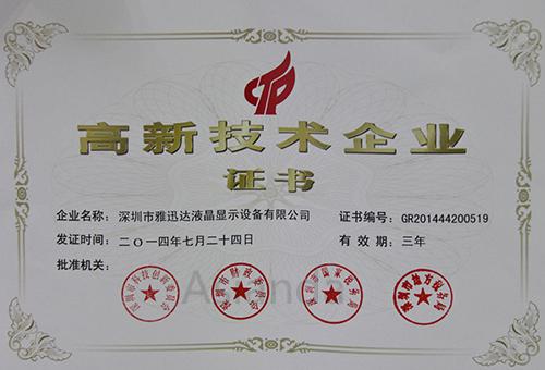 1、獲“國家高新技術企業(yè)認證”:是對雅迅達始終貫徹高起點、高標準、高科技、高水平、高效率戰(zhàn)略方針的有力注腳,也成為公司歷史上具有標志性的進程。
