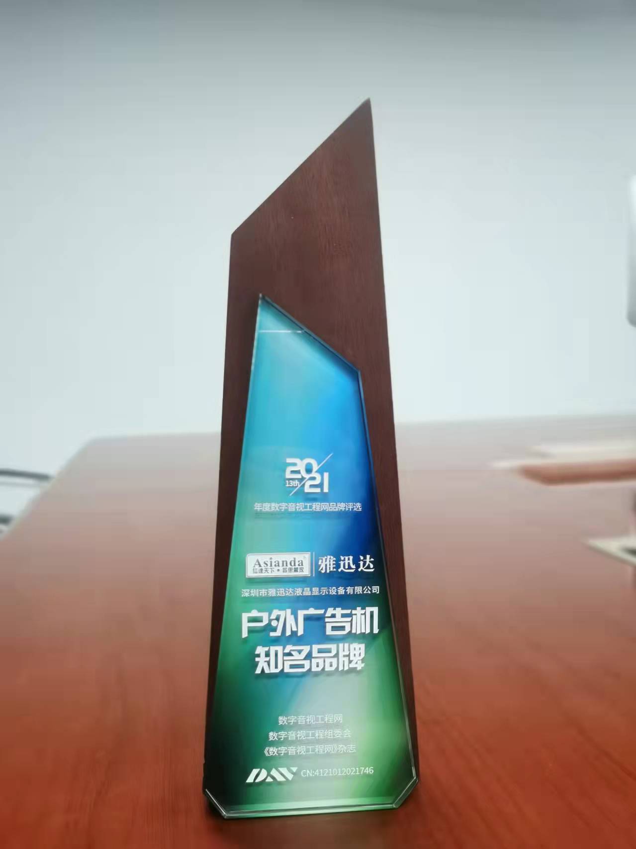 喜報(bào)|雅迅達(dá)榮獲2021年度戶外廣告機(jī)知名品牌 近日,深圳市雅迅達(dá)液晶顯示設(shè)備有限公司獲數(shù)字音視工程網(wǎng)評選為“2021年度戶外廣告機(jī)知名品牌”。