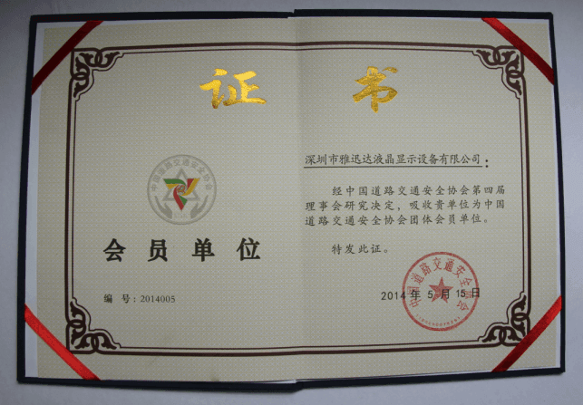 雅迅達(dá)加入中國道路交通安全協(xié)會   近日消息,深圳市雅迅達(dá)液晶顯示設(shè)備有限公司通過中國道路交通安全協(xié)會理事會審核,成為中國道路交通安全協(xié)會團(tuán)體會員單位,享受協(xié)會的選舉權(quán)、被選舉權(quán)和表決權(quán),參加協(xié)會會...