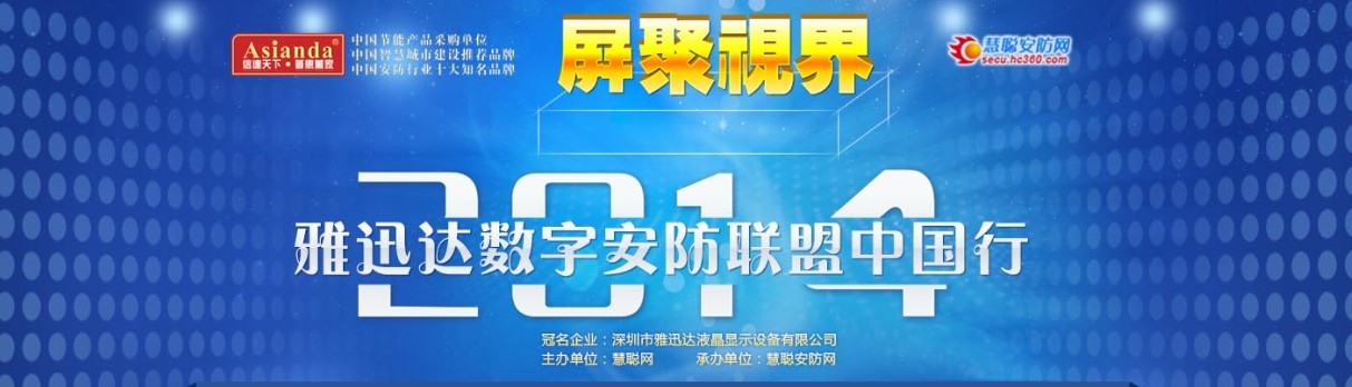 預(yù)告:雅迅達(dá)安防中國行6月3日登陸上海灘   6月3日,“屏聚視界——雅迅達(dá)2014數(shù)字安防聯(lián)盟中國行”上海站活動也將為上海這座國際大都市再次注入一股新的活力。這次由深圳市雅迅達(dá)液晶顯示設(shè)備有限公司獨(dú)家冠名,慧聰安防...