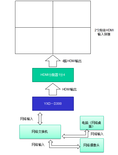 YXD-D300單畫面輸出時可以顯示一個大的畫面,4分割時可以每塊屏顯示一個完整畫面,16分割時每塊屏可以顯示4畫面,可以接入多路PC或者IPC信號??梢允〉艟仃嚒⒔獯a器、分割器和圖像處理器等。